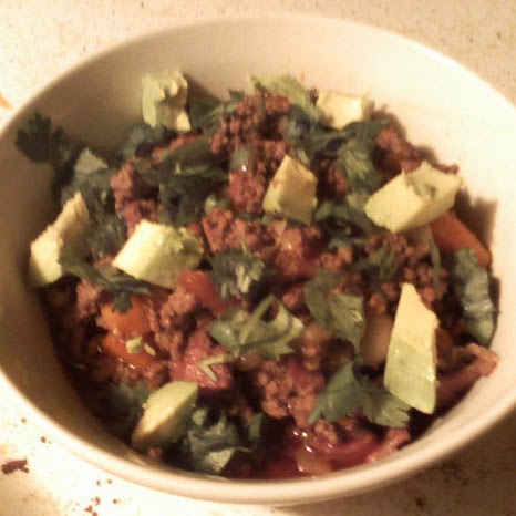 As always, I'm guessing on the seasoning, because I rarely measure, or add more after I measured it, so, sorry about that. Can I just say that I really, really like this chili? Really.